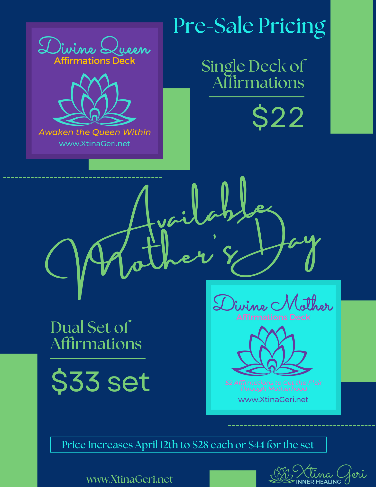 NOW you can with my Divinity Decks. There are 4 Divine Affirmation Decks, each with 52 Affirmations: